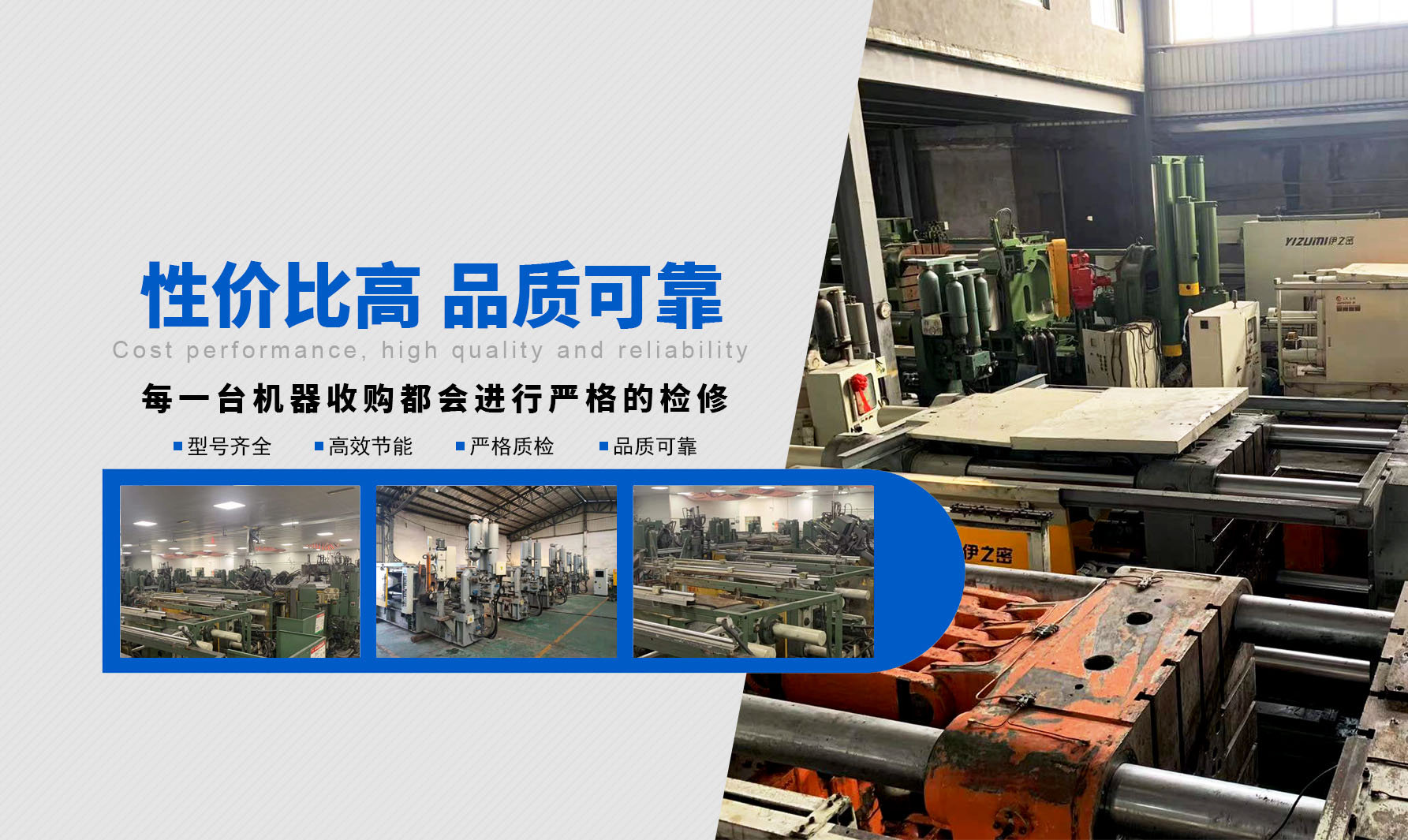 ? ? ? ? 在當(dāng)今市場競爭如此激烈、產(chǎn)品利潤日漸微薄的嚴峻形勢下,優(yōu)質(zhì)可靠的二手壓鑄機尤為凸顯其順應(yīng)壓鑄行業(yè)市場的極大優(yōu)勢,我們限度的為客戶減少項目投資風(fēng)險、降低投資成本、優(yōu)化整合運作資金。同時,盤活閑置二手設(shè)備,創(chuàng)造社會剩余價值,為推動我國循環(huán)經(jīng)濟建設(shè)貢獻力量!